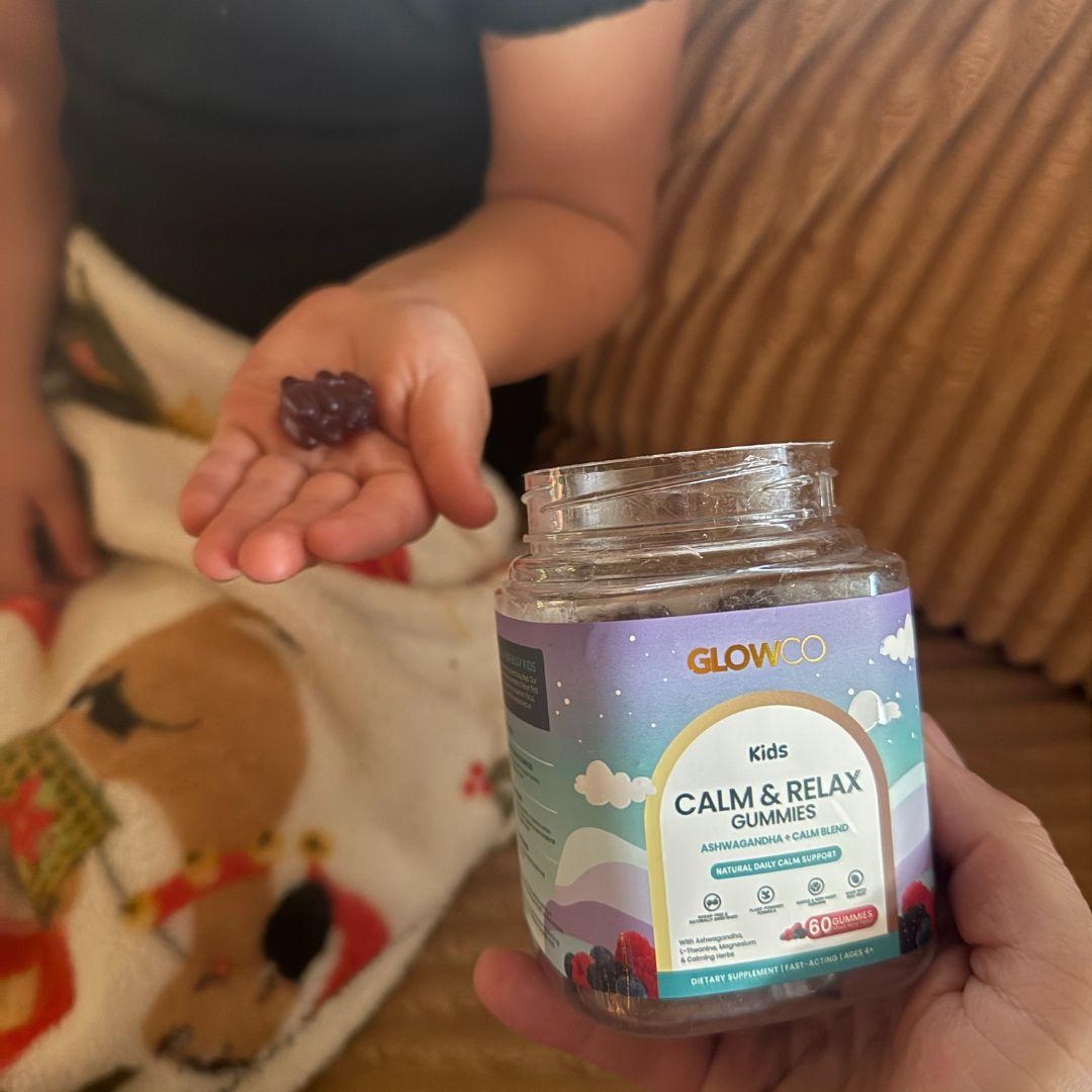 Results may vary* In a consumer study, parents reported their children felt 43% calmer and more focused during the day after taking Glowco Kids Calm & Relax Gummies daily for two weeks. Formulated with Ashwagandha and Magnesium Glycinate to support natural calm without melatonin or sugar.